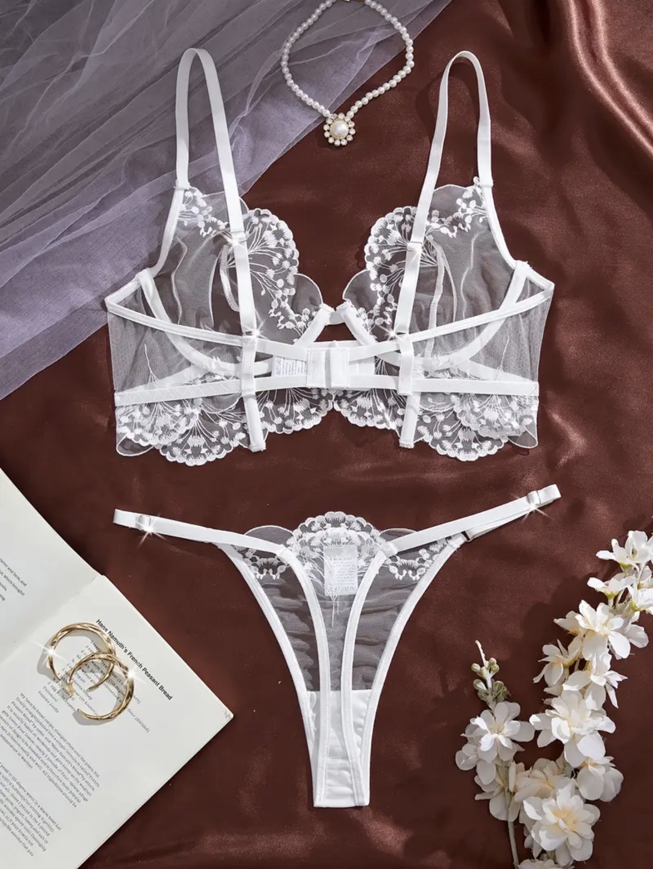 Elegantiški ir viliojantys balti apatiniai, sukurti pabrėžti moteriškas formas ir suteikti pasitikėjimo savimi. Subtilus, figūrą išryškinantis dizainas sukuria jausmingą ir prabangų įvaizdį, puikiai tinkantį ypatingoms progoms ar tada, kai norisi jaustis ypatingai.